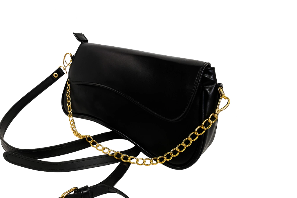 A Bolsa Marselha é uma bolsa pequena que possui uma longa alça de corrente possibilitando o uso transversal ou lateral. Ela tem um detalhe de corrente na parte da frente e zíper por dentro.